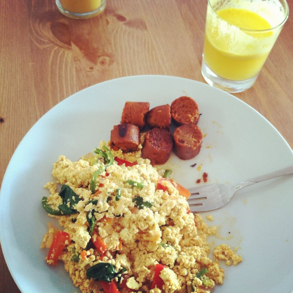 Ta-da! You can serve it with salsa or hot sauce and a side of field roast meatless "sausages"
