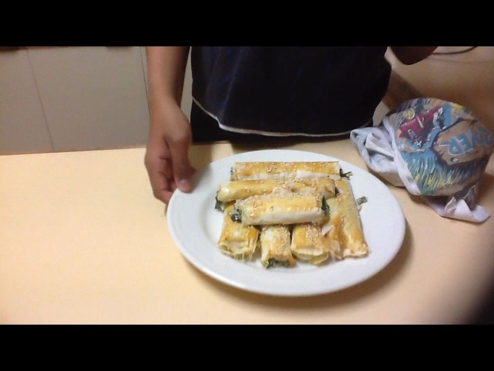 Using the ricotta vegetable mix, spoon a small amount onto the edge of the pastry closest to you. The carefully role it up and cut it into 3-6 pieces whatever suits you. Repeat with remaining supplies