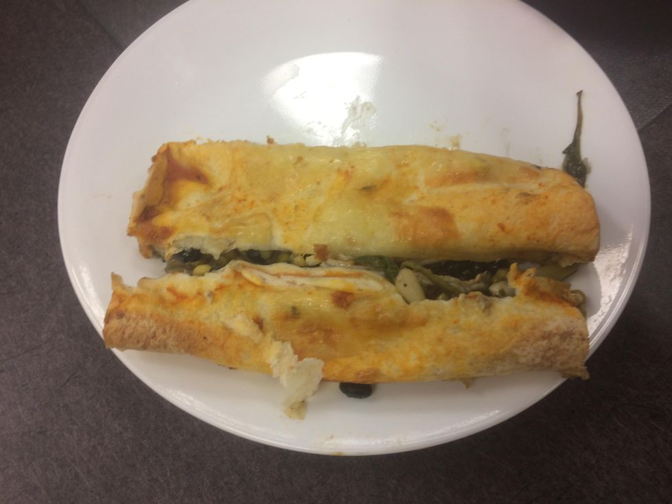 Make filling: In a large bowl, combine 2 cups cheese, beans, spinach, corn, scallion whites, and remaining 1 teaspoon cumin.
