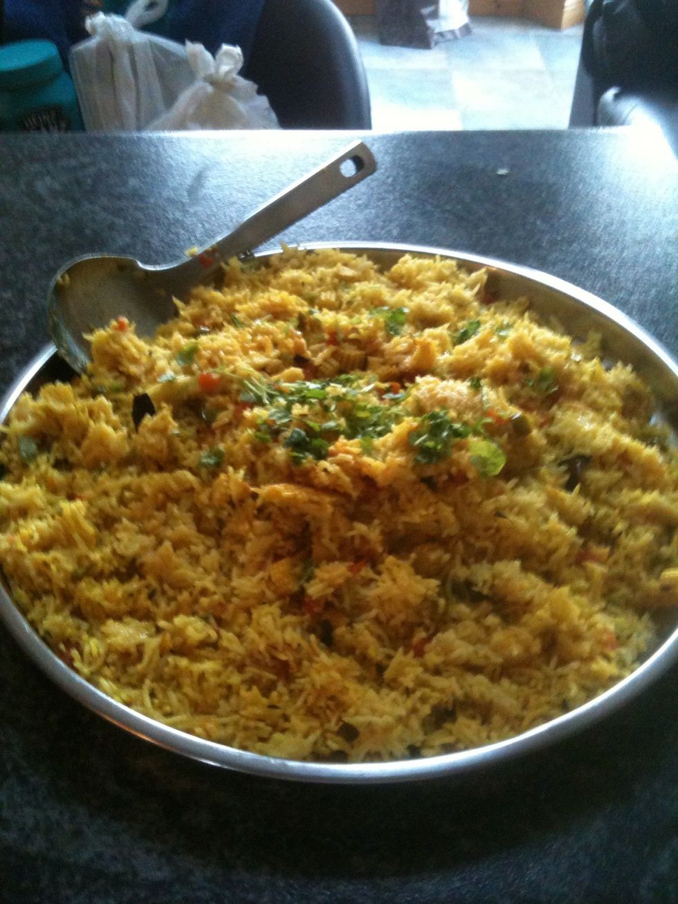 Add unboiled rice, salt, curry powder, garam masala, to the mixture and close the pressure cooker on medium heat, Count up to 2 or 3 whistles.