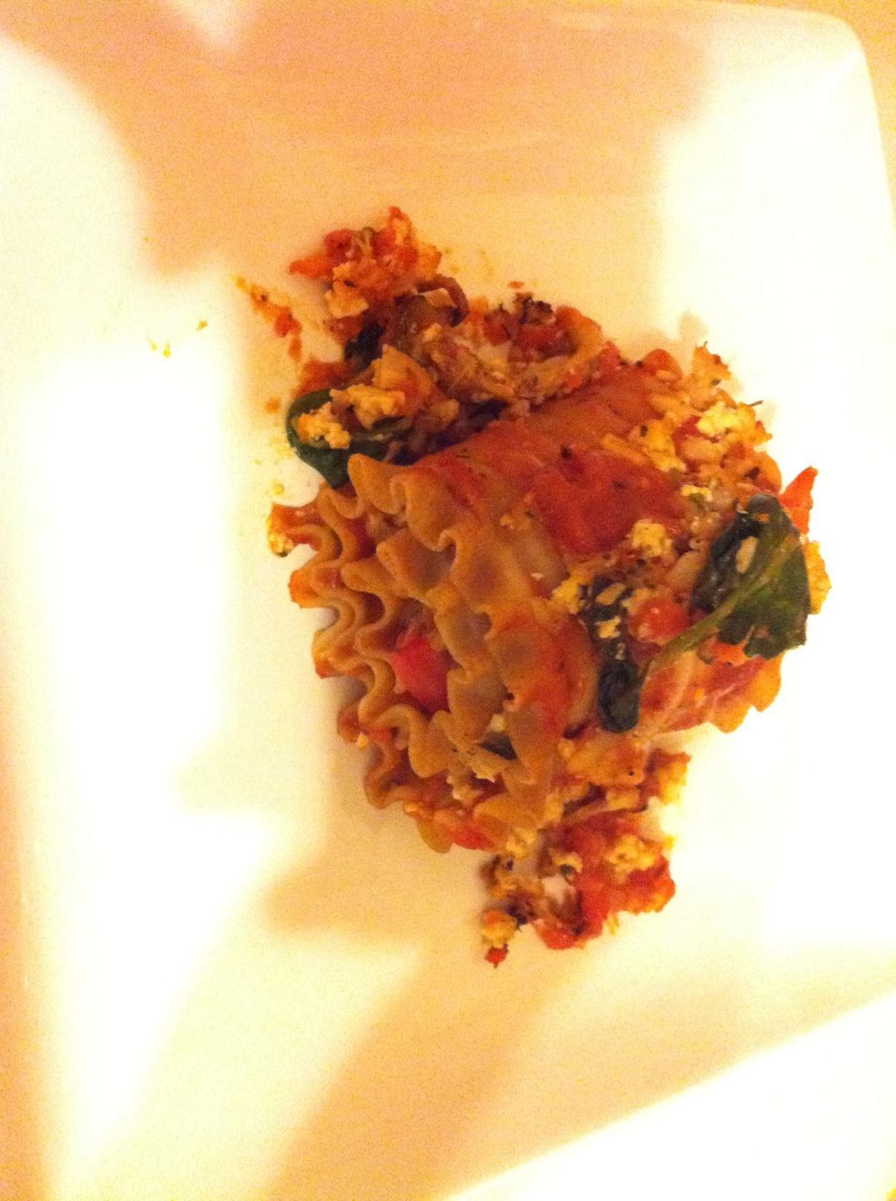 Whole wheat lasagna pasta Tofu Tomato sauce Onions Bell pepper Ginger Squash Carrots Black peeper Soy sauce