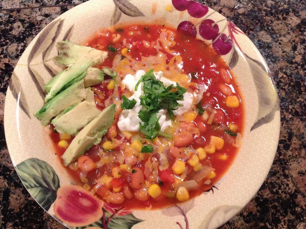 Add in beans (drained), tomatoes, salsa and chili powder. Bring to a boil.