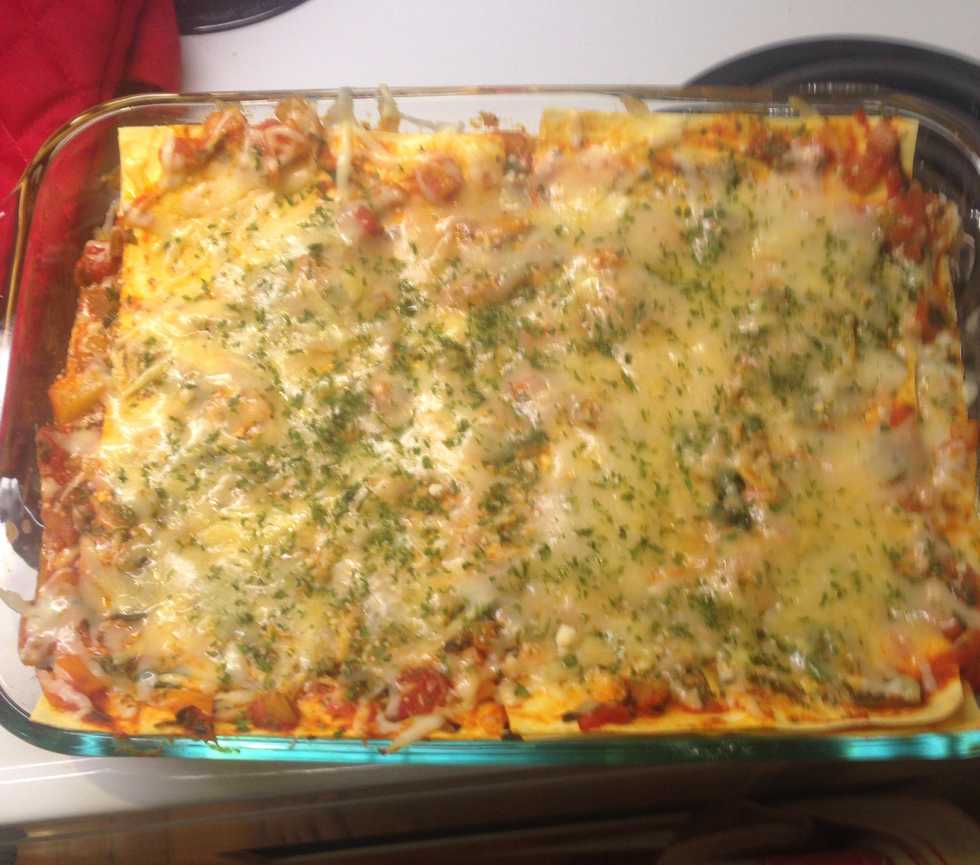 Remove tinfoil for last 10 minutes to brown the top of the lasagna.