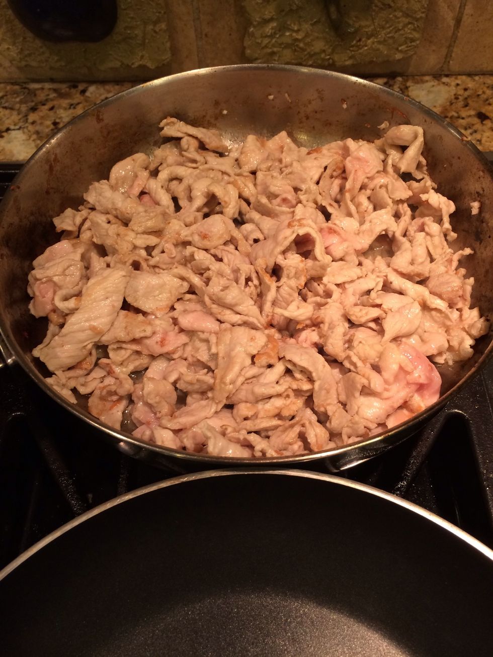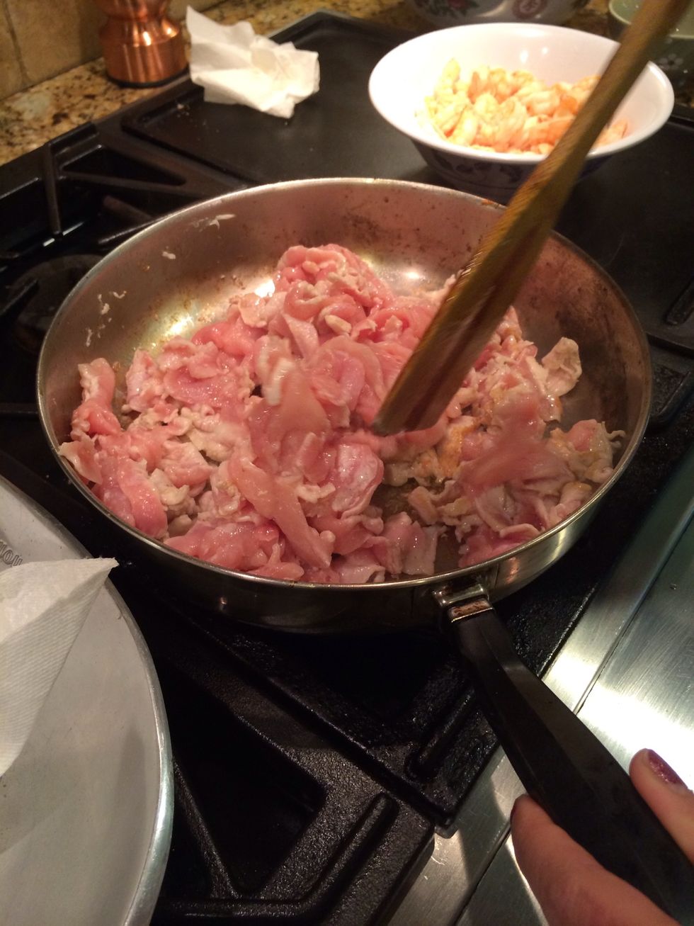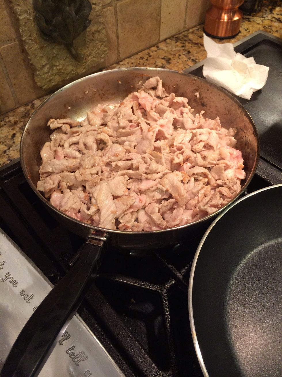 Gather ingredients- pork, shrimp, onions, batter mix, and vegetable oil.