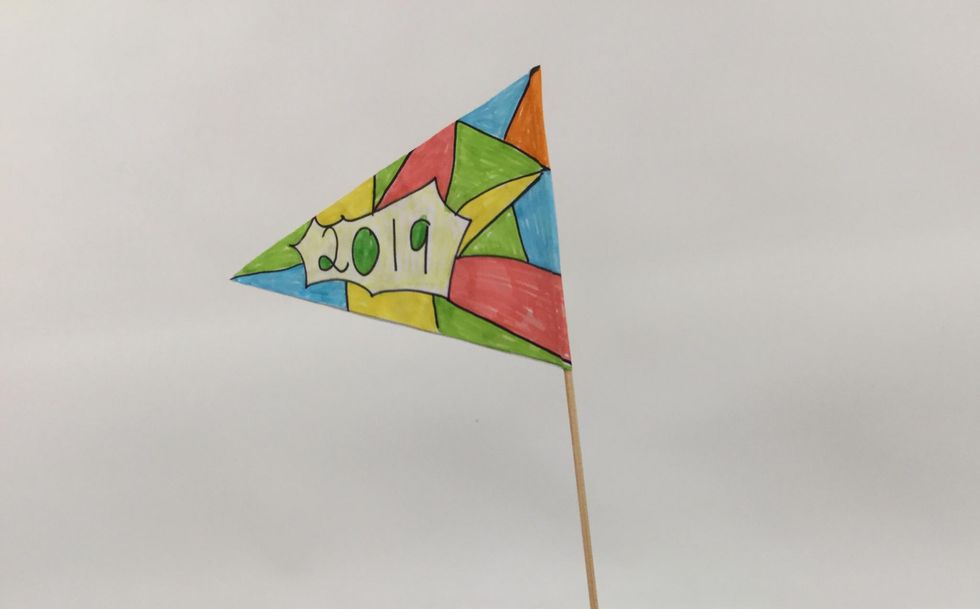 Rita två streck så att det blir en triangel. OBS! Spetsen ska vara mot den "öppna" sidan av pappret.