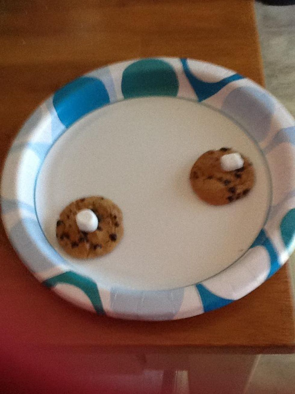 Put a marshmallow on each cookie. We had mini marshmallows but I bet the bigger ones would be great too.