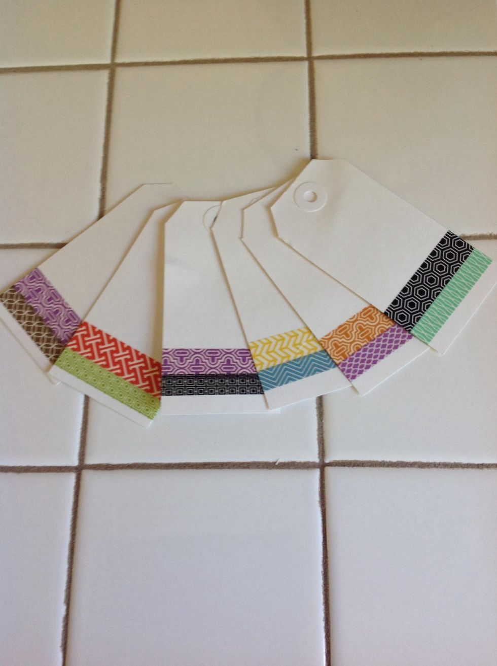 Wrap your washi tape along the back of the message tag. Cut the washi tape so it fits onto the back of the tag.