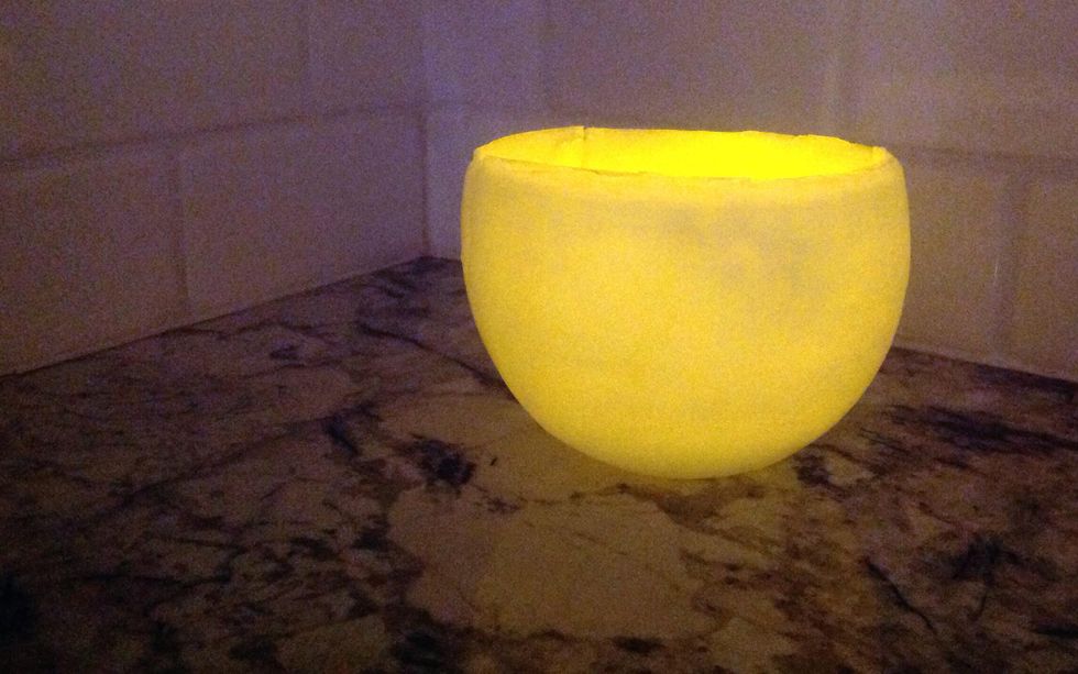 While the wax is still warm, set the balloon carefully onto the wax paper to form a flat bottom on your luminary.