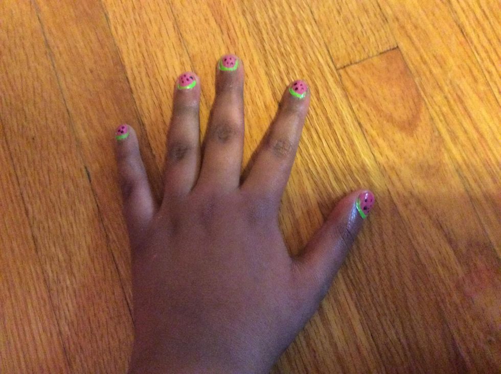 And viola! You have your cute and easy watermelon nails!