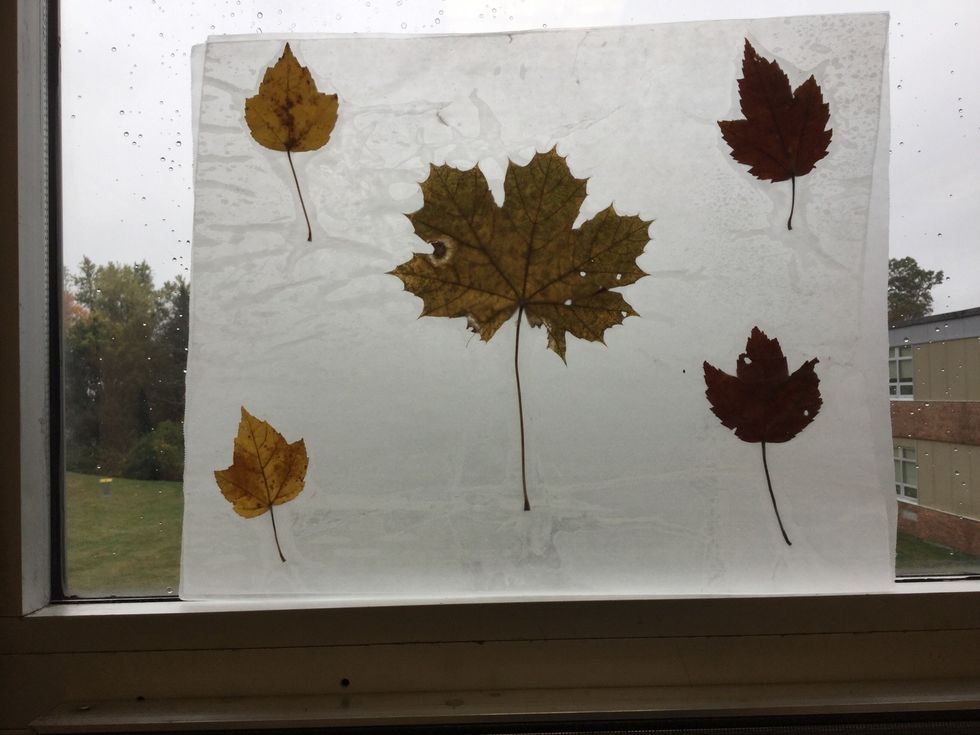 Put another piece of wax paper on top of the leaves once you are done placing the leaves