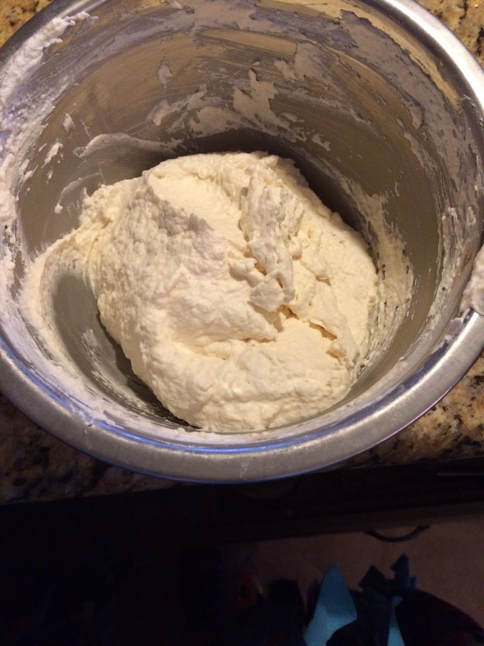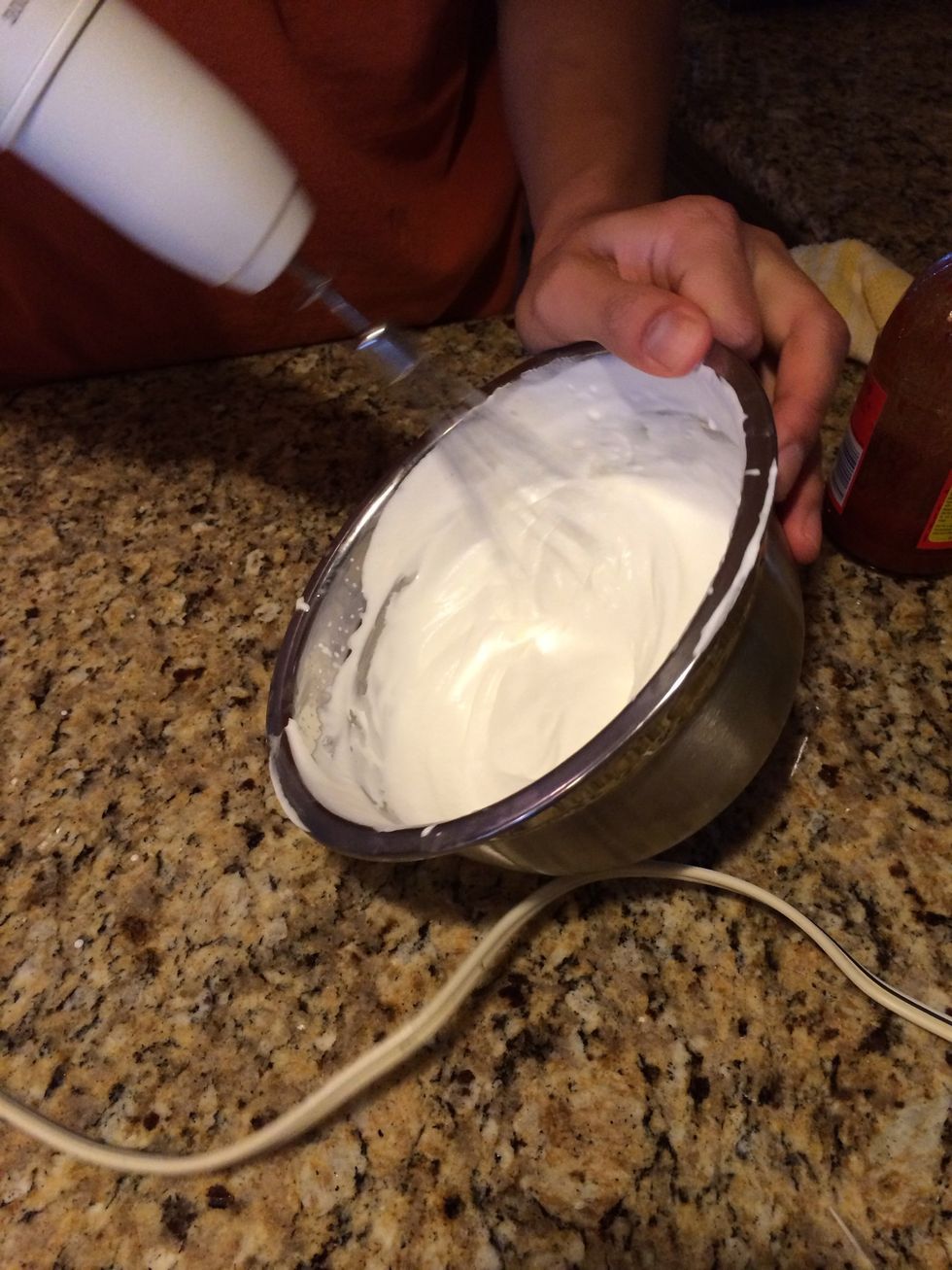 To bowl, add heavy whipped cream and whisk with hand mixer.
