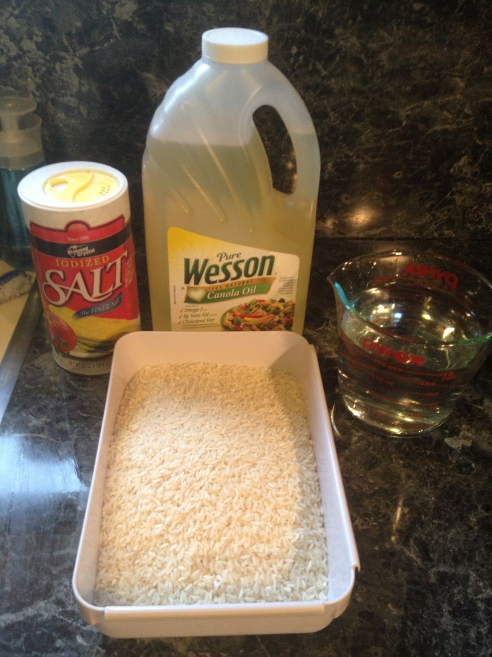 Put the water over high heat and bring to a boil. Add the salt and the rice.
