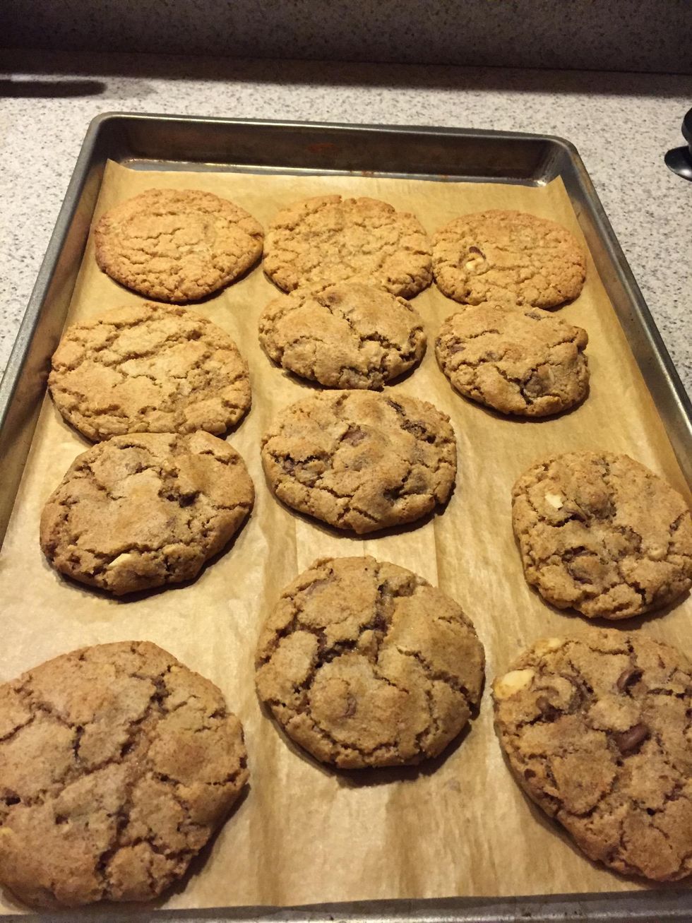 Next add your chocolate chips and almonds and mix together. If you have a mixer it may work out better for you.