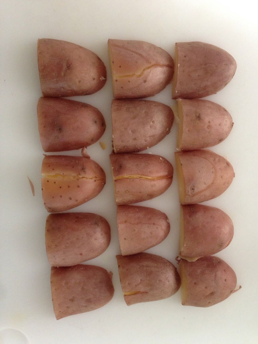 Scrub well and Boil potatoes. Here I am using roosevelt potatoes. I like the color because I will keep the skin. You can use any kind of your choice. Don't use the ones used to make mashed potatoes