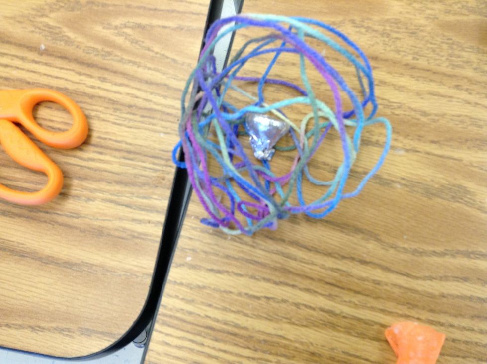 Now, cut a piece of yarn to about 12in. Or more and put it In glue mixture of water and liquid glue.