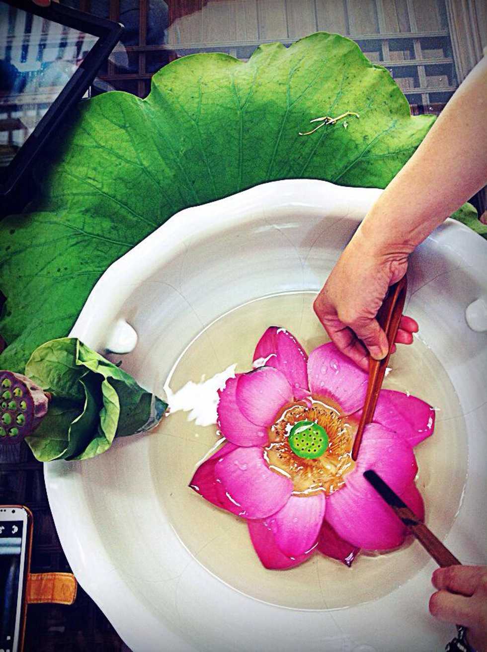 Use alive lotus as a fermenter. Wrap prepared one looks like picture and fix lotus leaf with bamboo.