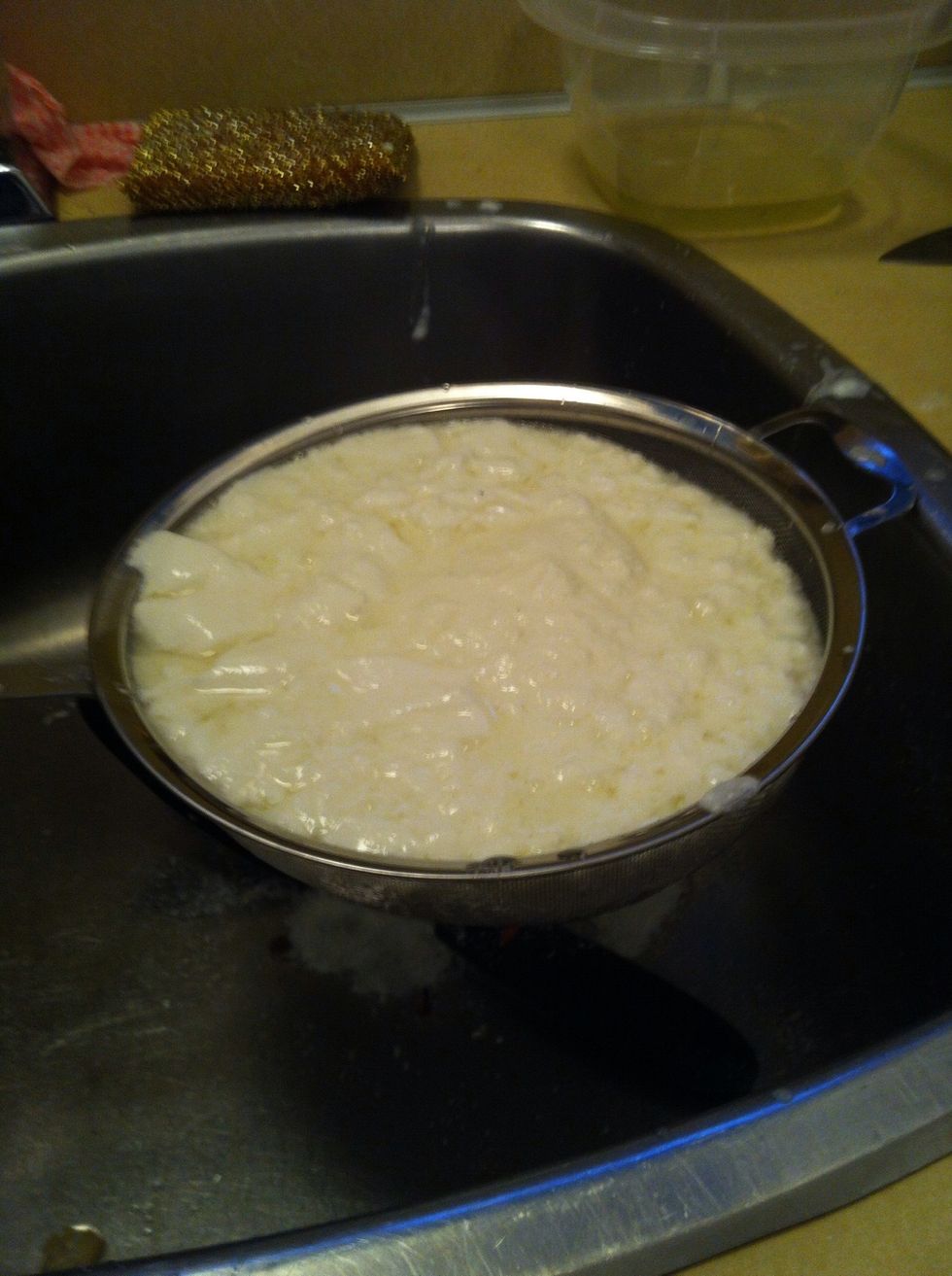Drain the yellow liquid in a strainer.