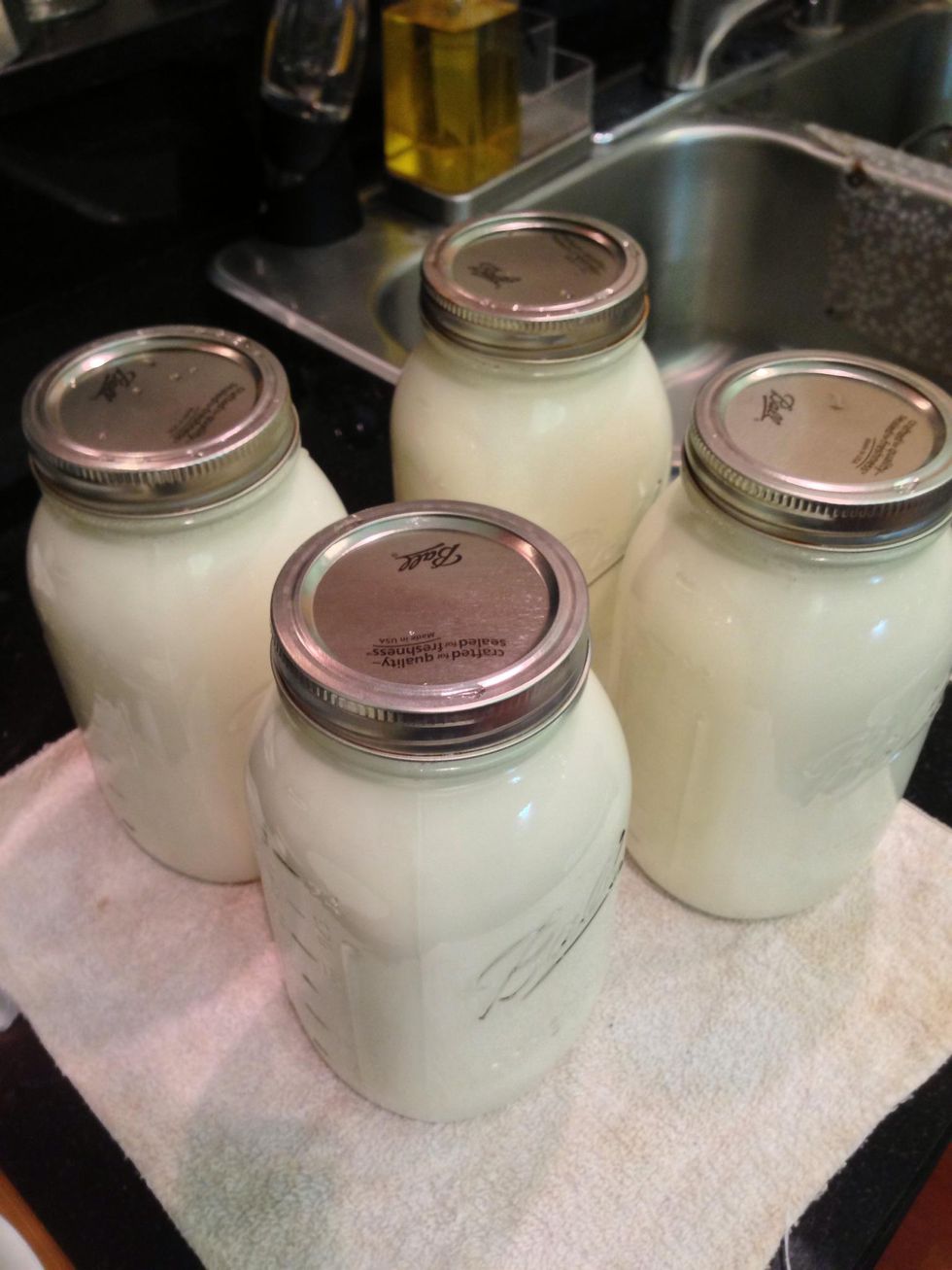 A gallon of the milk should fit in 4 quarts of mason jars.