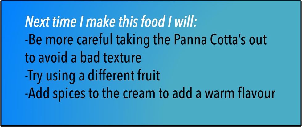 I gave my dish a score of 8/10 because whilst it was nice, its texture was not smooth; it was bumpy and uneven.