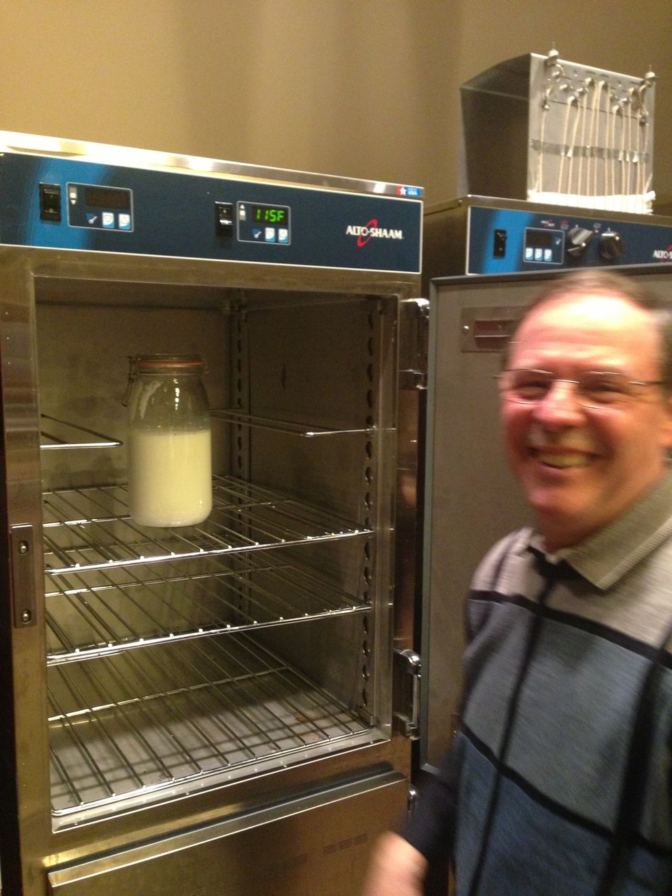 Place the milk mixed with yogurt into your cooking hold oven at 115F (46C) For a minimum of 6 to 8 hours. You can even leave it in overnight if you want to for a tangier flavor.