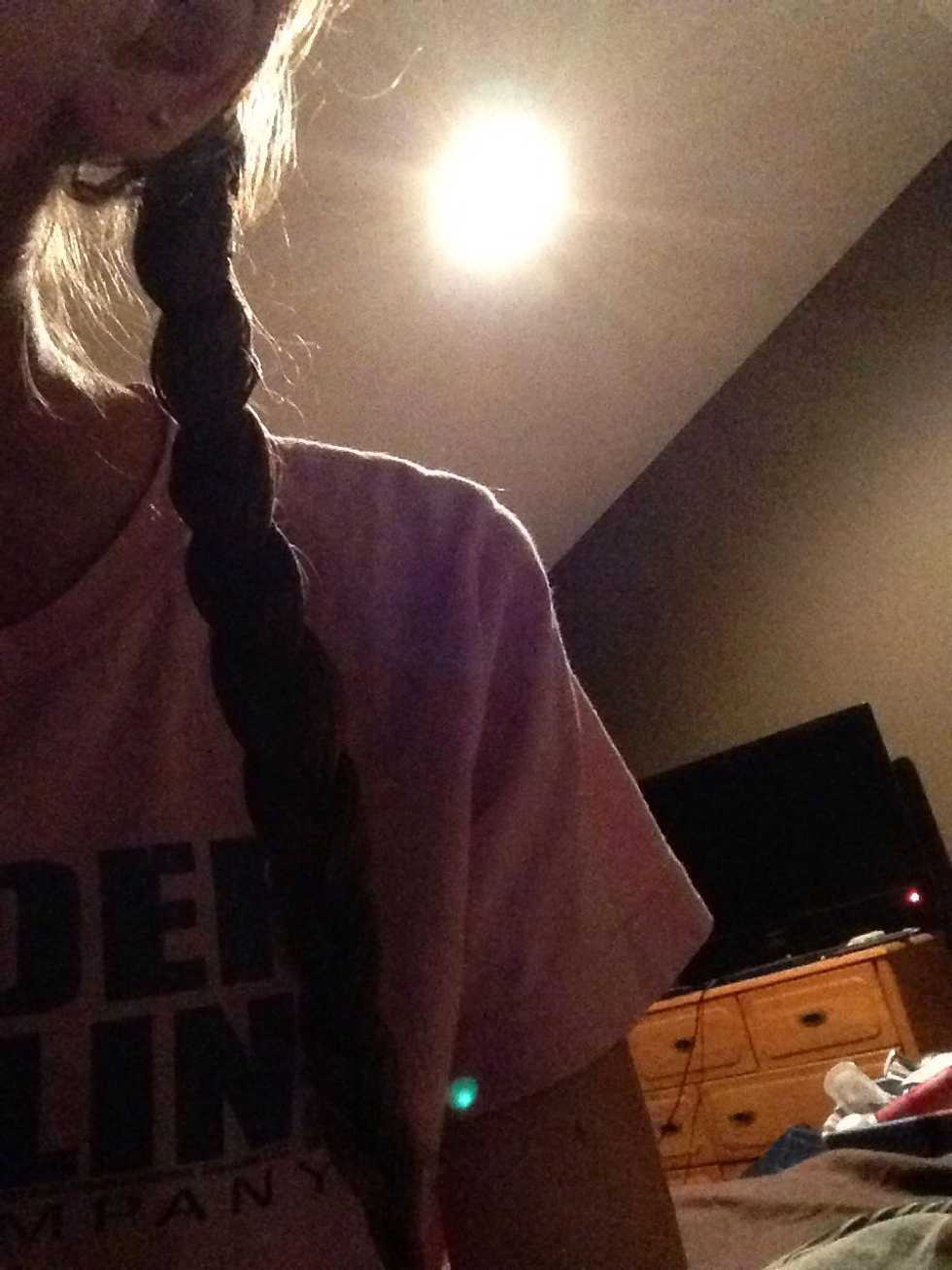 After massaging the gel in, braid your hair and elastic it on the end, I only did two braids, but u can do any amount. If u want looser crimped hair, put in less braids, and do the opposite for tiny.