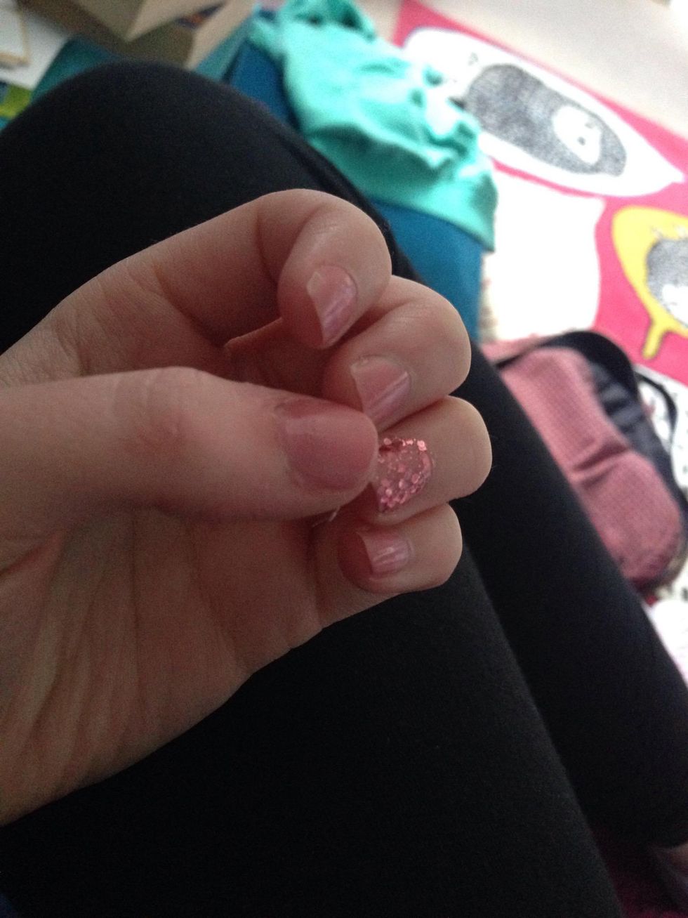 I've just gone for really simple pink nails. One of them with glitter 💅