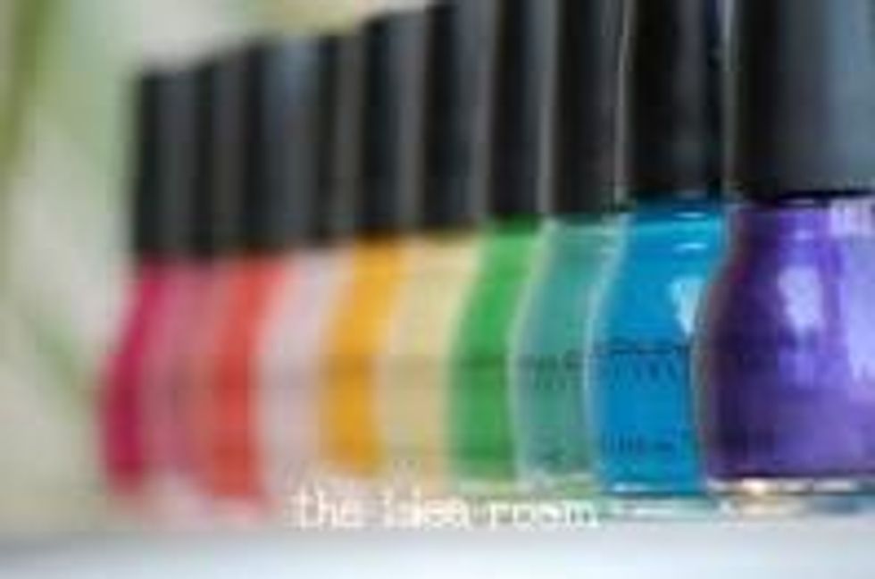 You can always buy the quick dry stuff that you spray onto your nail but why pay when you can do this for free! ^_^Pick your colorPaint your nail (sorry for such awful graphic quality) >.<Then u get the final dry result in under 2min