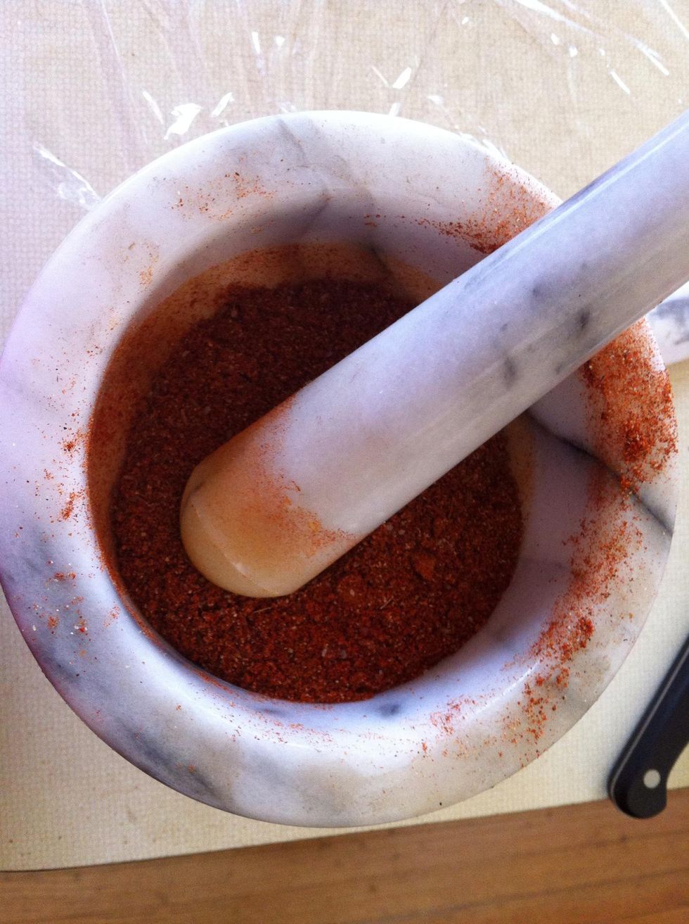 Mix all ingredients and it's ready to use. I had to use my mortar and pestle because I ran out of ground cumin and had to crush some. The original recipe came from Grill It app but I've Changed it