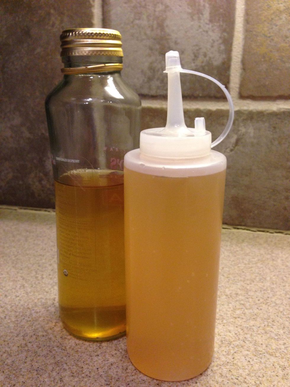 After 30 minutes, pour into a container. This one works best to easily use on your hair.