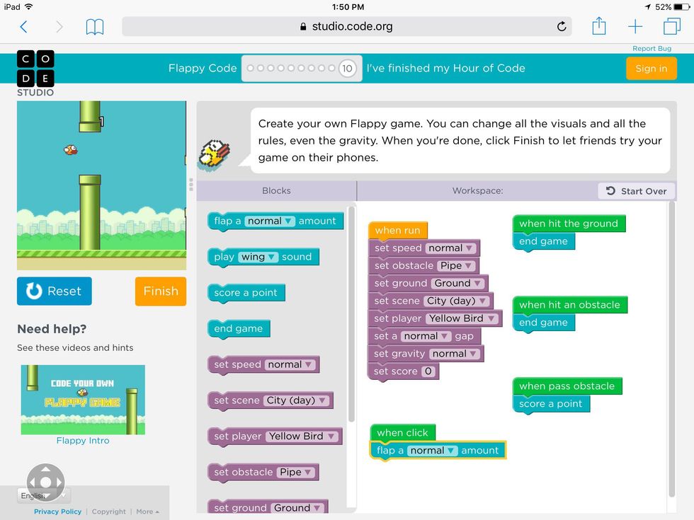 Look up studio.code. Scroll down and click on the flappy bird game. When the video pops up click the x button in the corner. This is were it will take you.