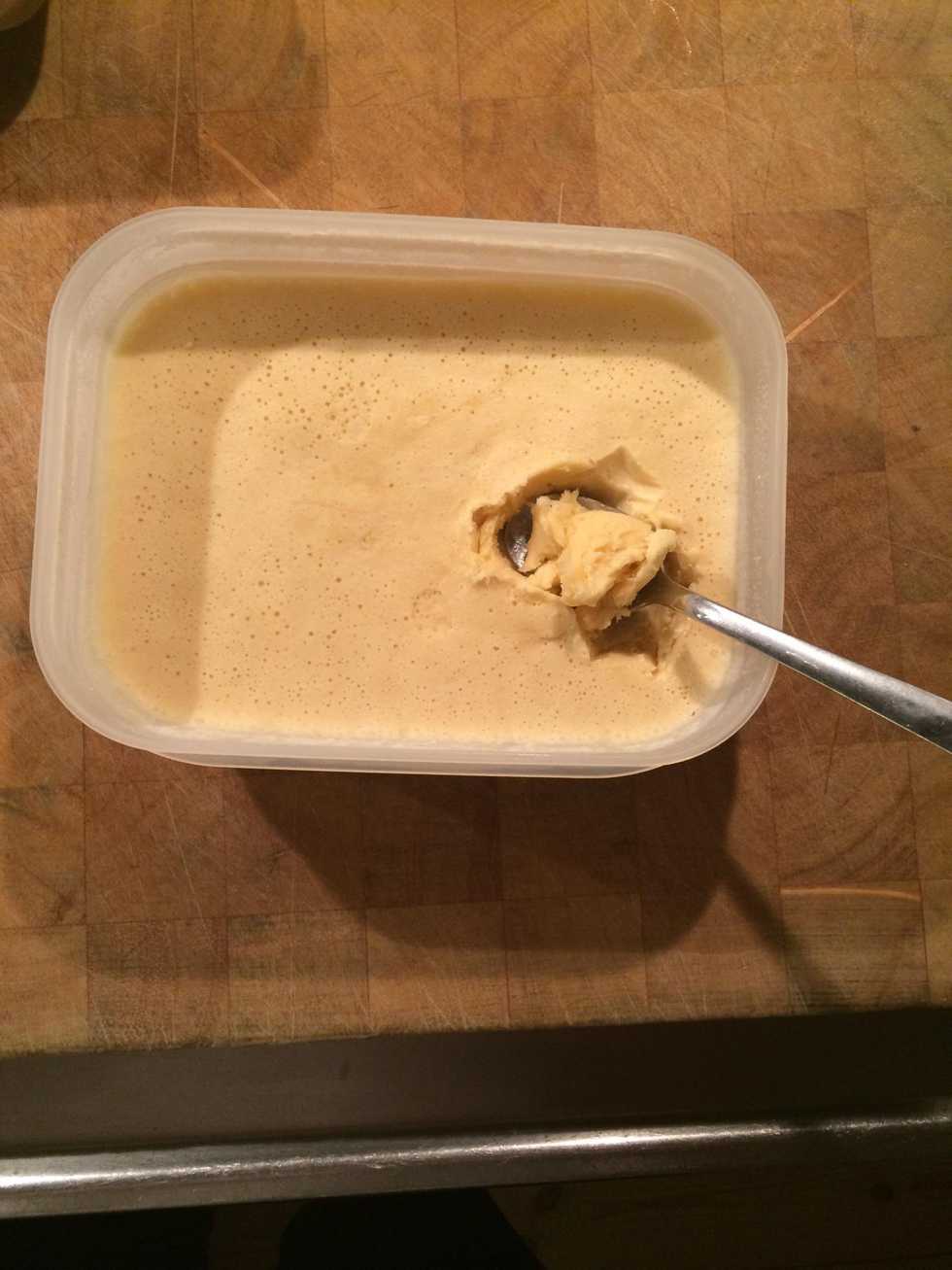 Here's all you need: Eggs, protein powder, vanilla sugar and a can of cream cheese.