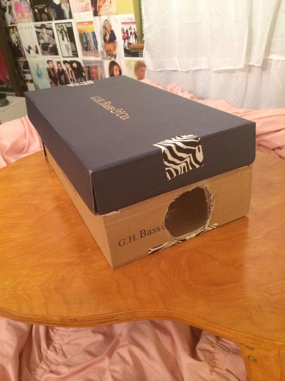 First I prepared my shoebox. Cover all holes & openings, especially the cut outs on the sides! You want to make it so no light escapes or enters the box.