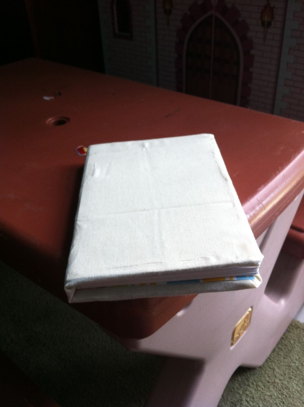 I glue my cover done with a hot glue gun. (I added some paper to my cardboard since my fabric was see through.)