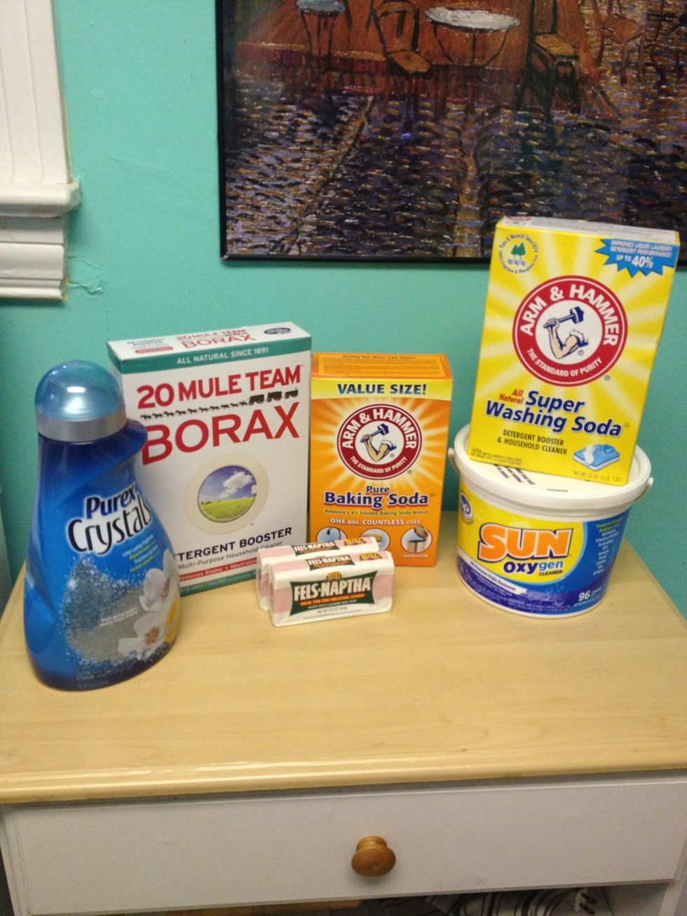 All of your ingredients can be found in the laundry section of your local store. At my local Walmart this all rang up to $25.11!