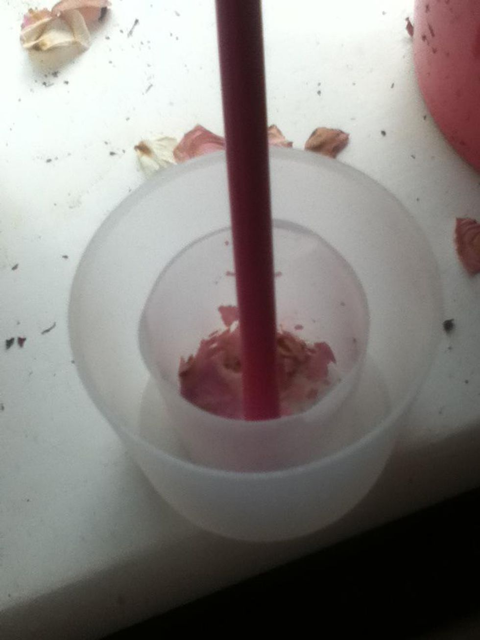 collect really dry flower petals of desired colour - so dry that they break in your hands