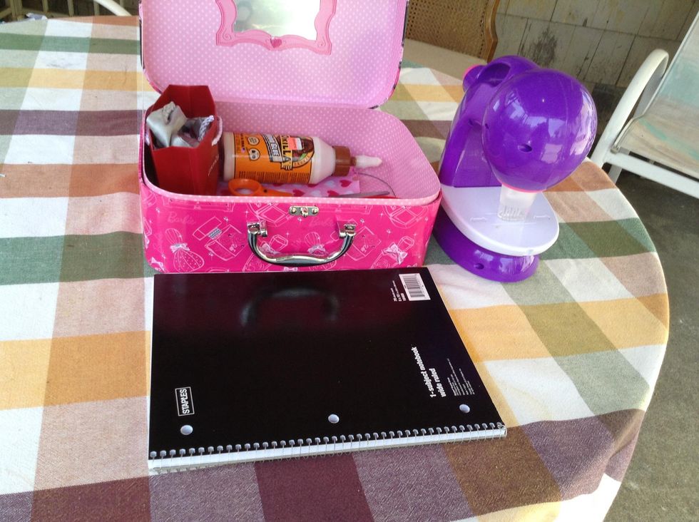 You would need a sewing machine,cloth,scissors,gorilla glue,strips of cloth,small bag to put your big cloth in and a note book
