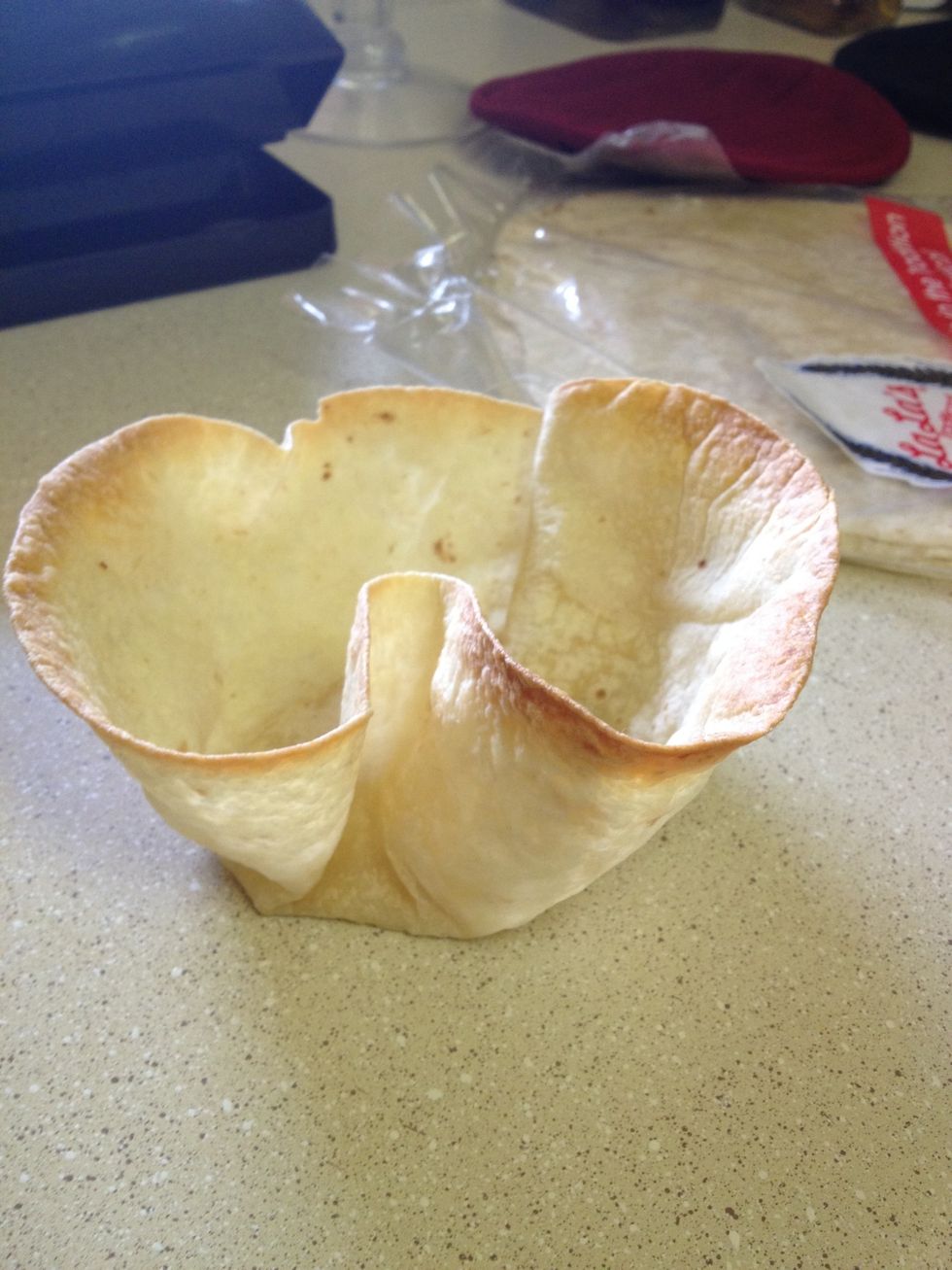 Put the tortilla in the bowl then place the bowl in the oven! Leave it in for about 10 minutes or however crispy you want it!