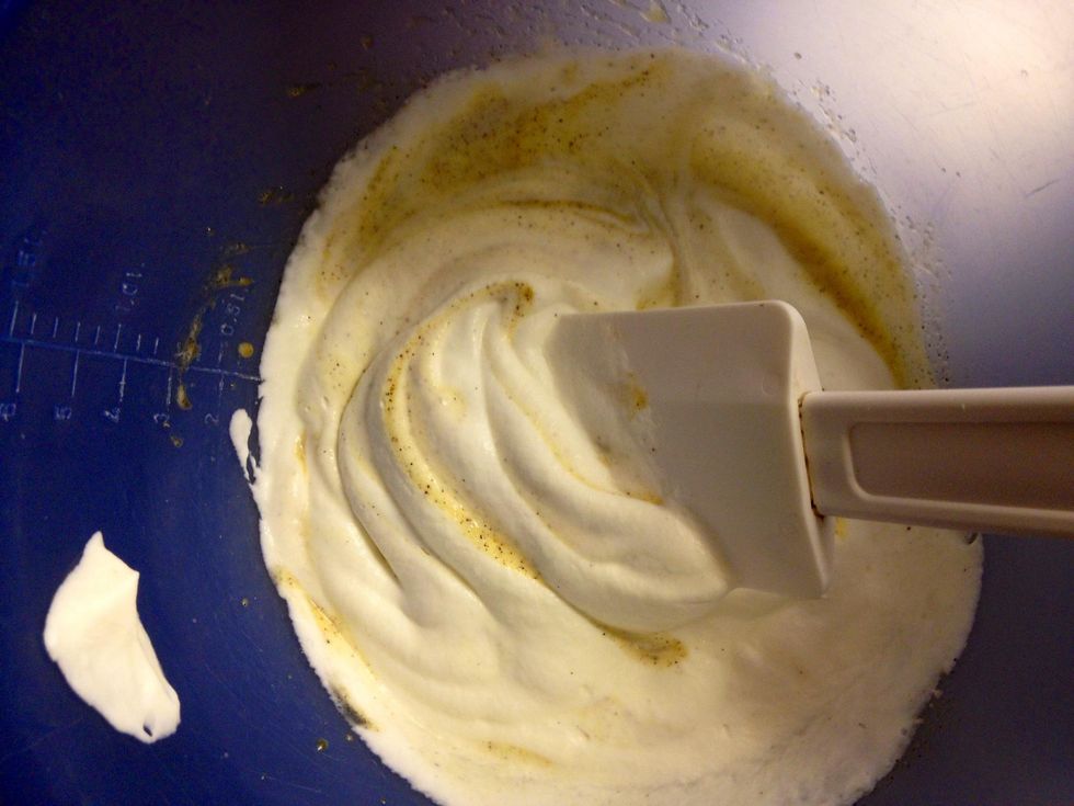 Gently "fold" in the cream in the bowl with the vanilla mix.