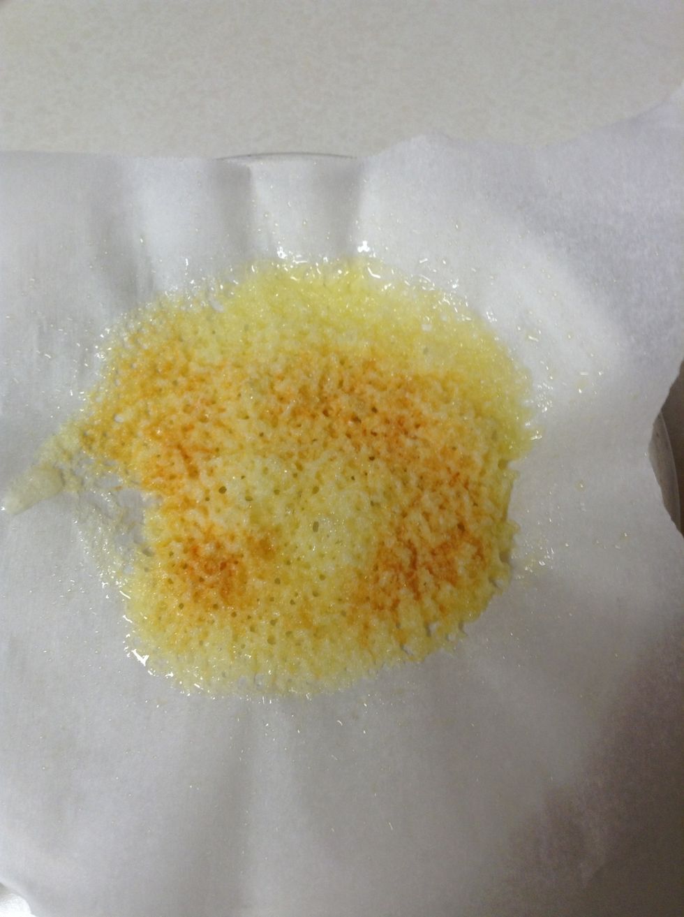 Cheese should look like this and then wait for a minute to harden then peel off paper and enjoy!