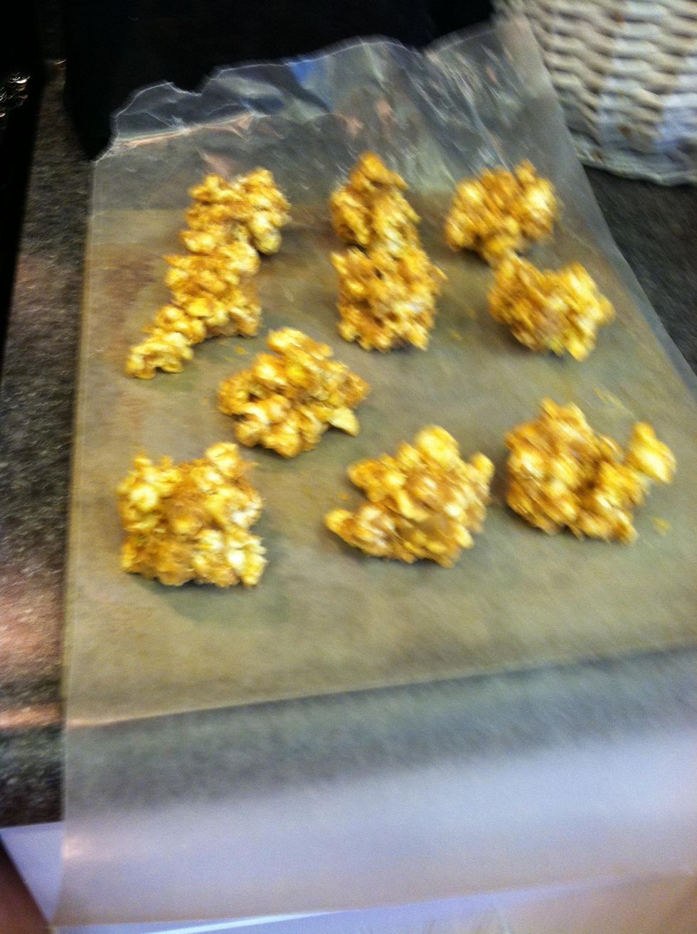 Next, with your hands mix popcorn gently, so the popcorn doesn't break. If not mixing well add more honey!