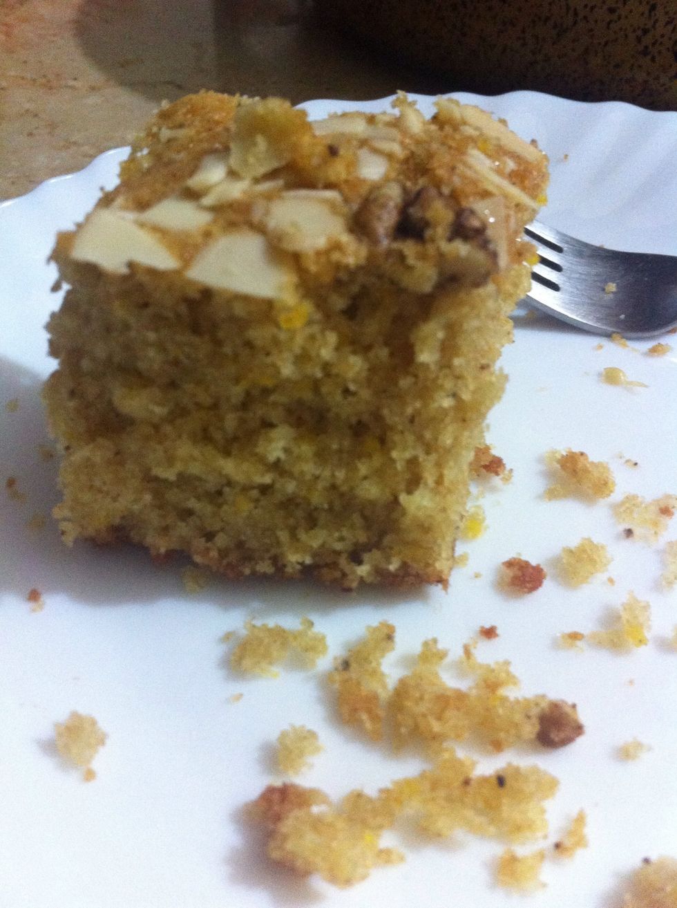 Steamy-hot-fresh-out-of-the-oven cake tastes too good. Eat some before coolin it n you'll agree. Love & share