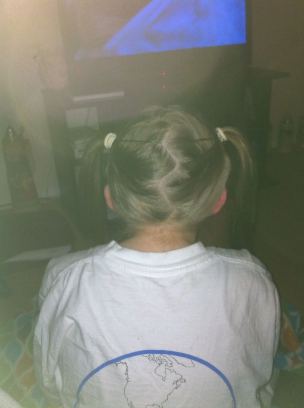 After brushing hair, take your comb/pencil to make a zigzagged line. Go from right to left or left to right. (Which ever way is what you want to do!)
