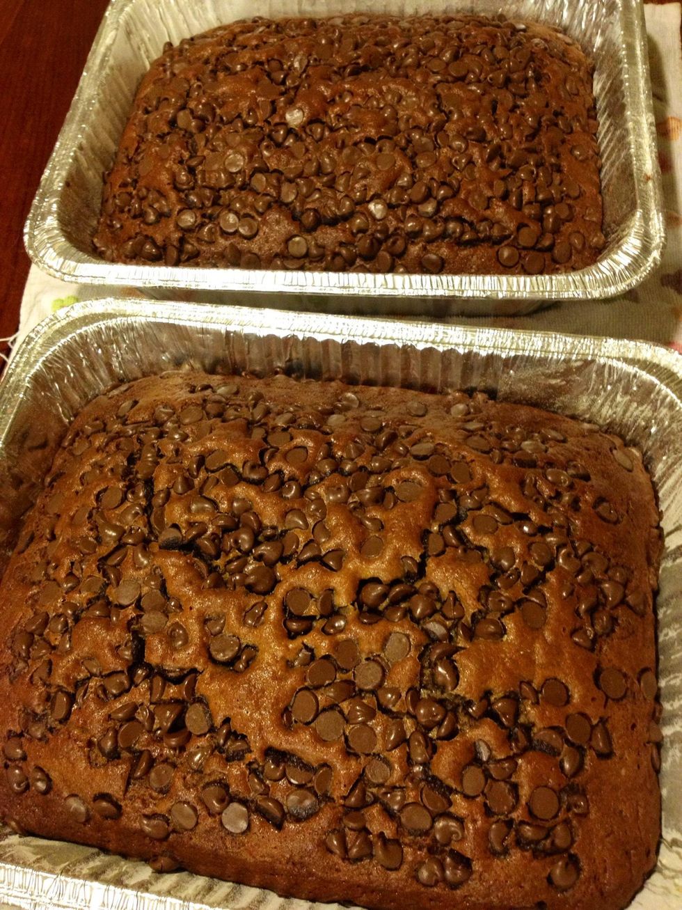 My husband prefers this cake instead of Zucchini Bread. It has chocolate chips on top, which of course makes anything better!! :-)