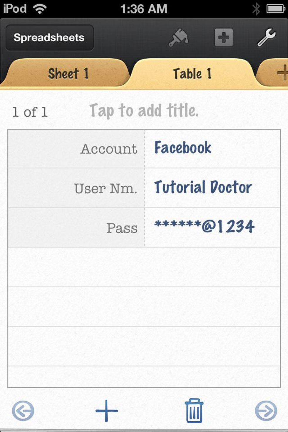 Double tap the next cell. Make sure the "T" is still selected and enter PASSWORD (I shortened mine here also to PASS. Tap the CHECK MARK.
