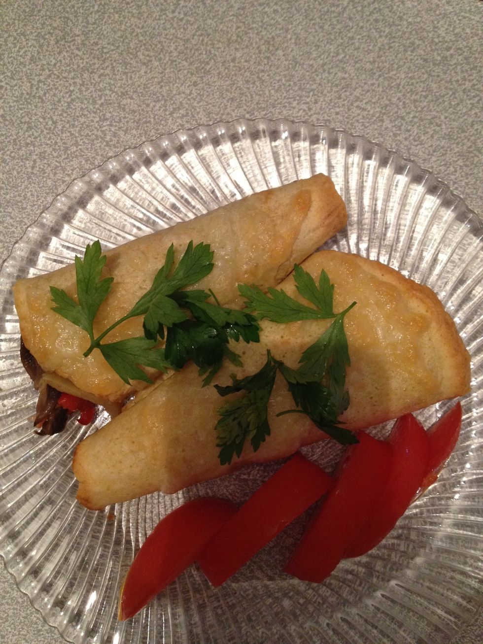 Pişen Mantarlı sebzeler kreplerin içine sarılır üzerlerine isteğe göre kaşar peyniri dökülüp fırında sadece peynirler eriyene kadar pişirilir...