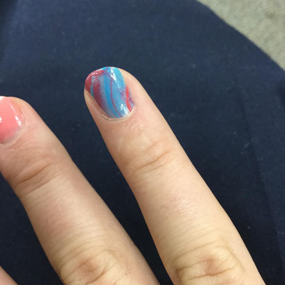 You will need- two different colored nail polishes - a clear top coat - nail polish remover -cotton swabs - a small container - a safety pin or something small to mix with - tape