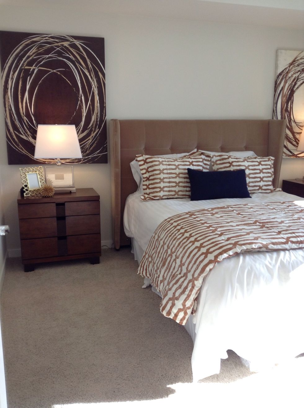 There are some well taylored headboards out in the market that can give you a modern hotel suite look.