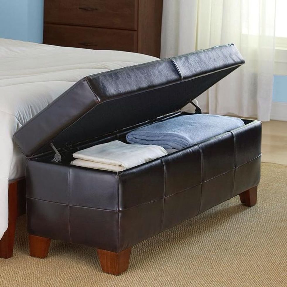Or, place a storage ottoman at the foot of your bed.
