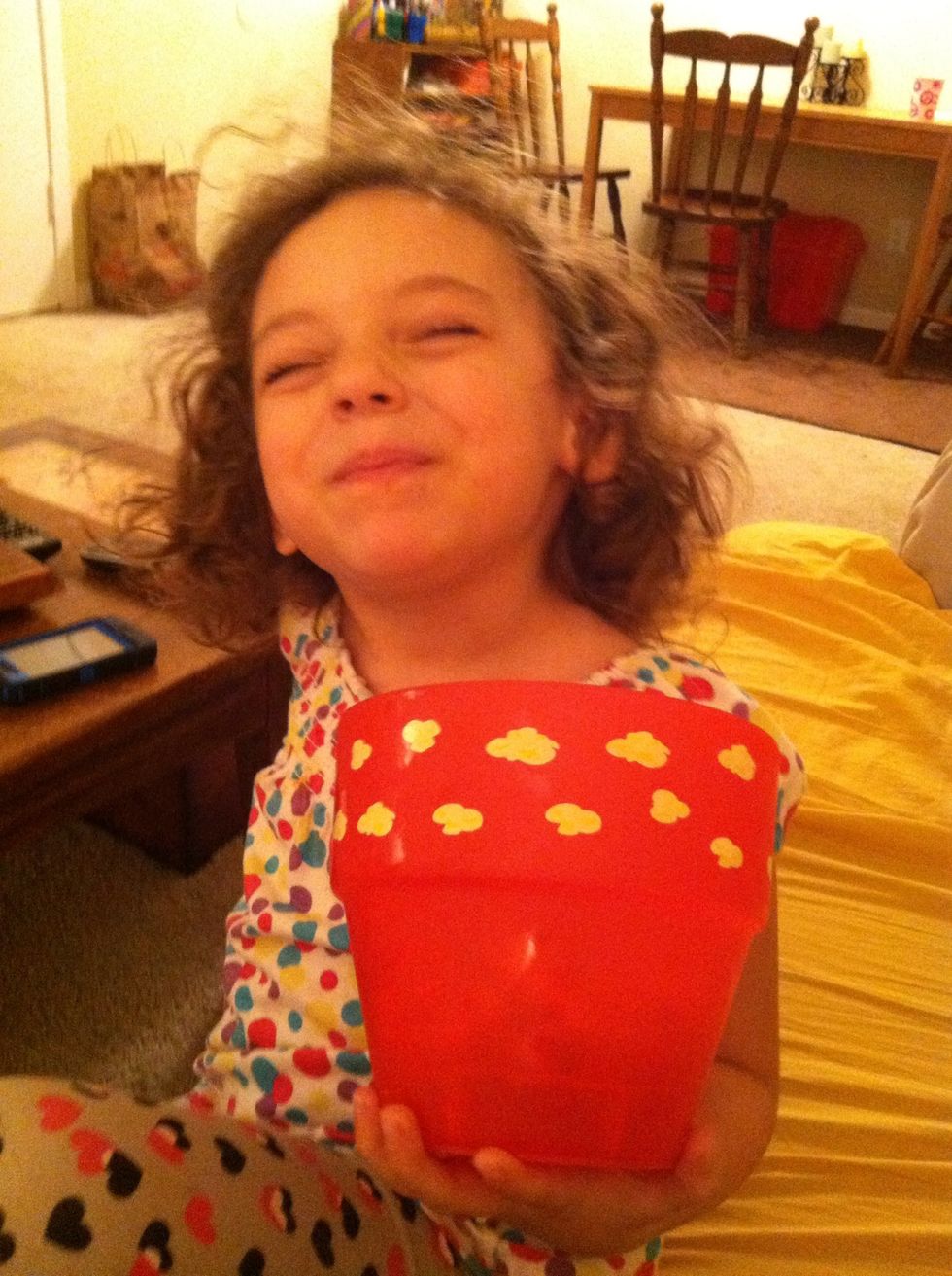 Pour into super cute popcorn bowls designed to separate the unpopped kernels.