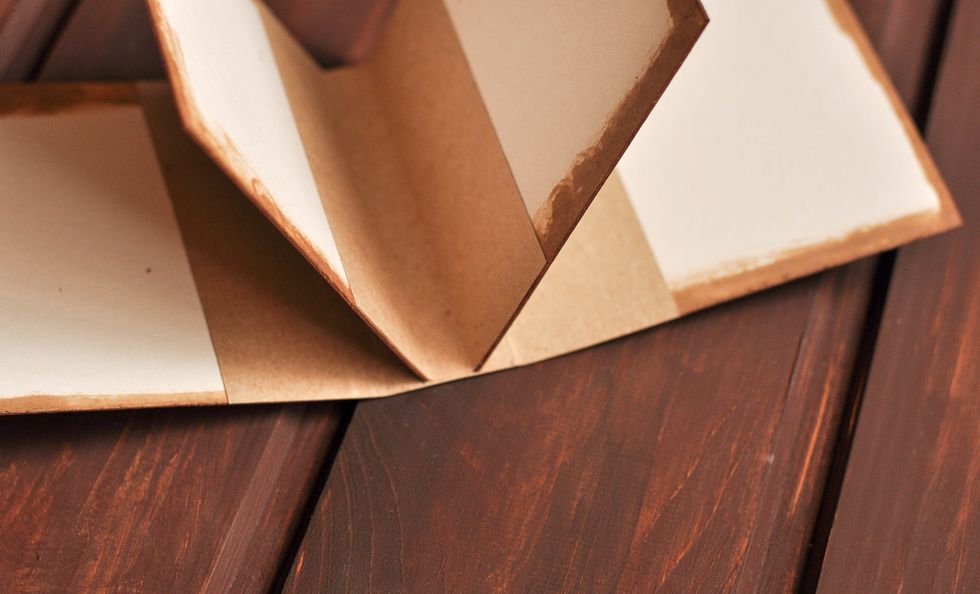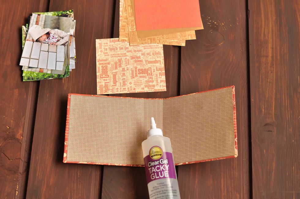 сверху на конверт клеим подложку для фото, размер должен быть +0.5-1см фото